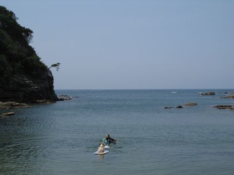 昨年とは違ってちょい沖の岩島まで泳いで渡る