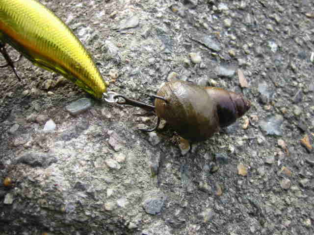 回収すると巻貝がくっついてました。