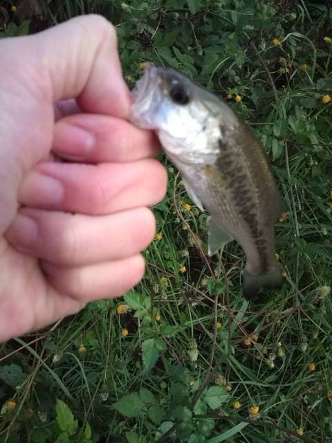 その後、子バスをウェードエリアで数匹釣って終了しました