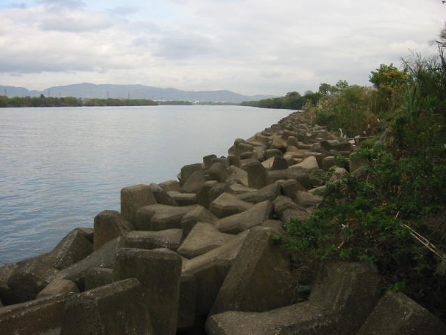 淀川 曇り、風:無し、水量:普通(-3.71)、水質:やや濁り